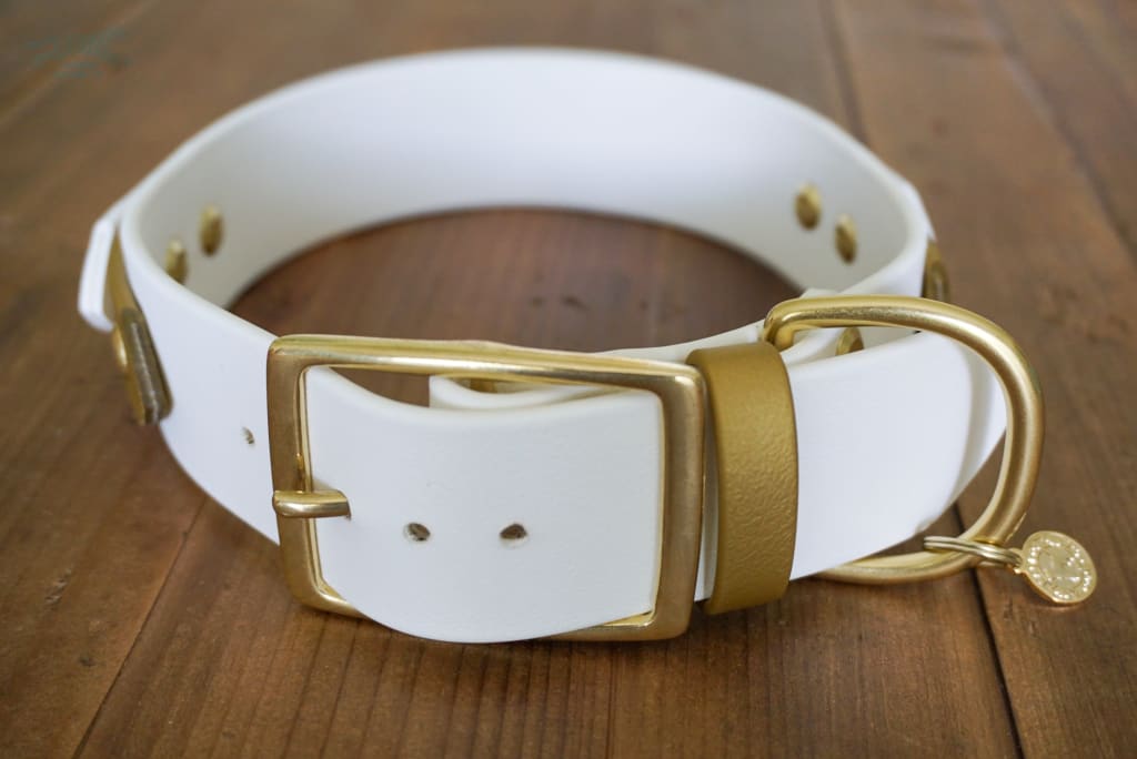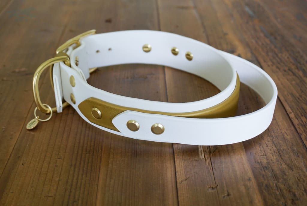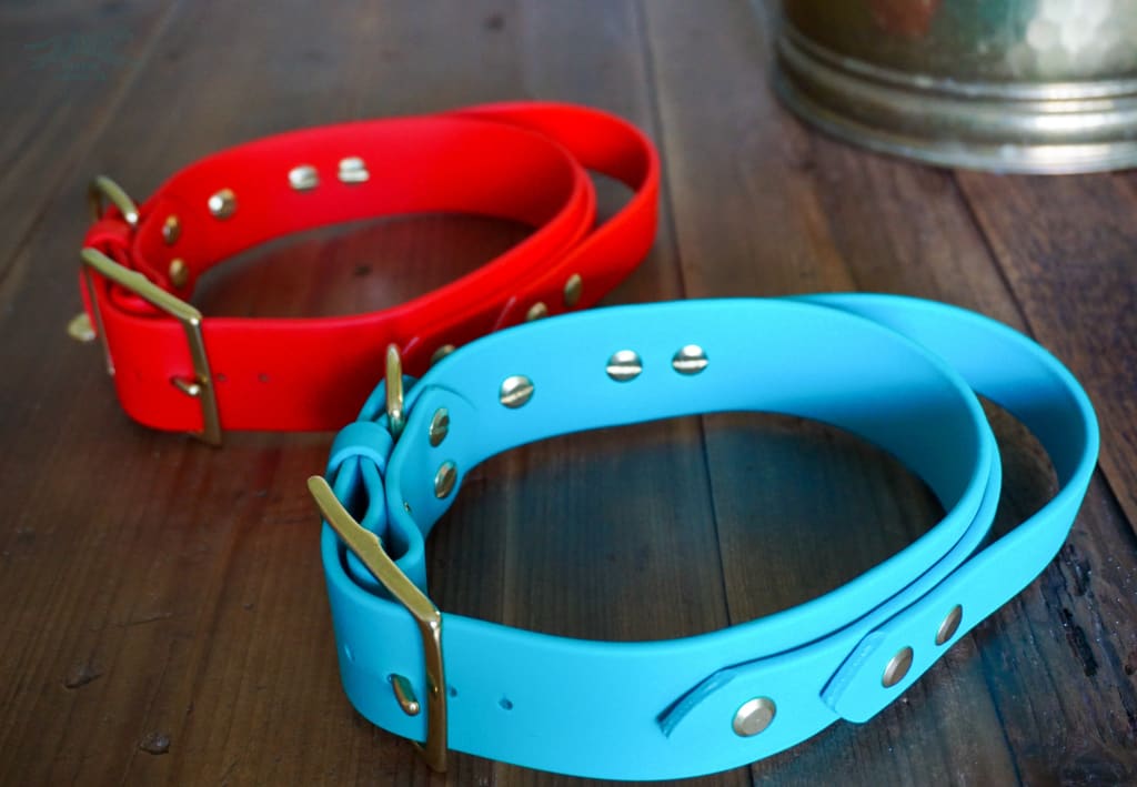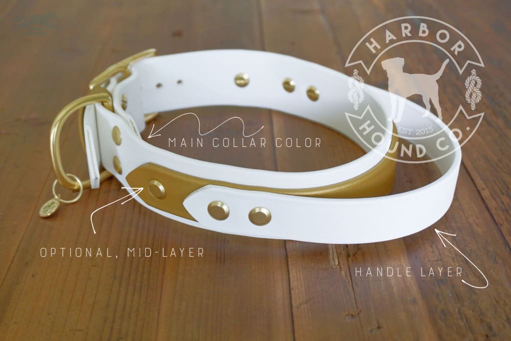Pick your favorite colors to create your custom 1.5″ wide waterproof Quick Control Collar. Choose one webbing color for the 1.5″ wide base collar layer, pick a 1″ wide webbing color for the permanent handle, and pick a color for the optional 1″ wide mid-layer.