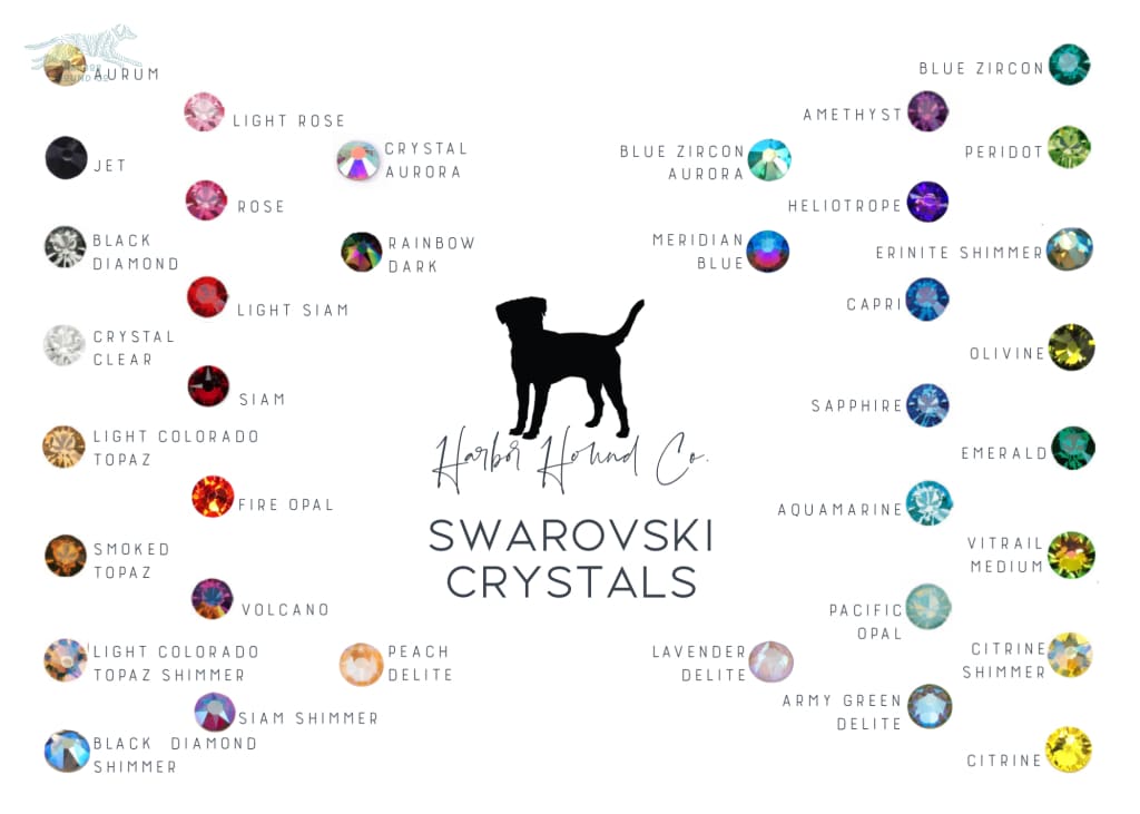 embellished with your color choice of metal round spots and beautiful premium crystals. Each crystal is handset in a gold, silver or black metal rim with care and precision. Crystal rim will match the Buckle Color.